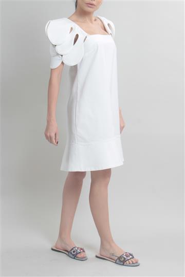 Vestido Adriana Degreas Evasê Mangas Trabalhadas Branco