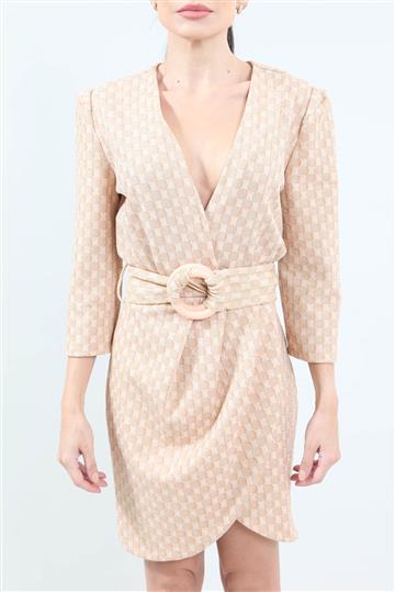 Vestido Allmost Vintage Transpassado e Lurex Bege