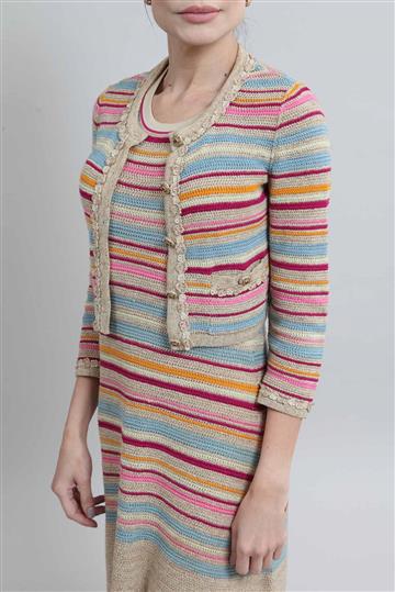 Conjunto Chanel Vestido e Casaqueto Tricô Colorido