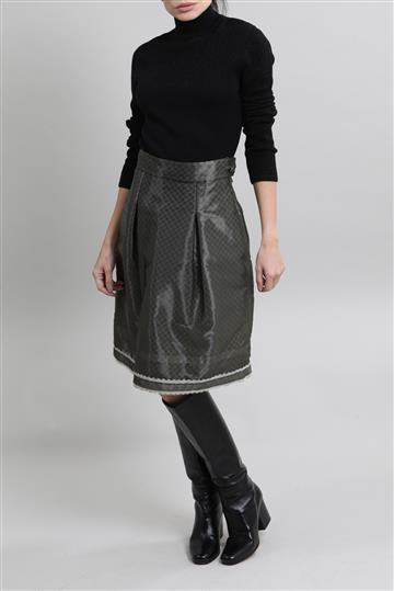 Saia Chanel Evasê Tafetá e Renda Verde