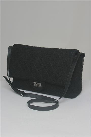 Bolsa Chanel Tweed Reissue Messenger Preta