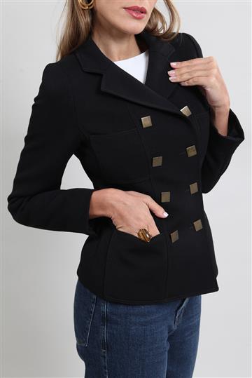Casaco Moschino Botôes Quadrados Lã Virgem Preto