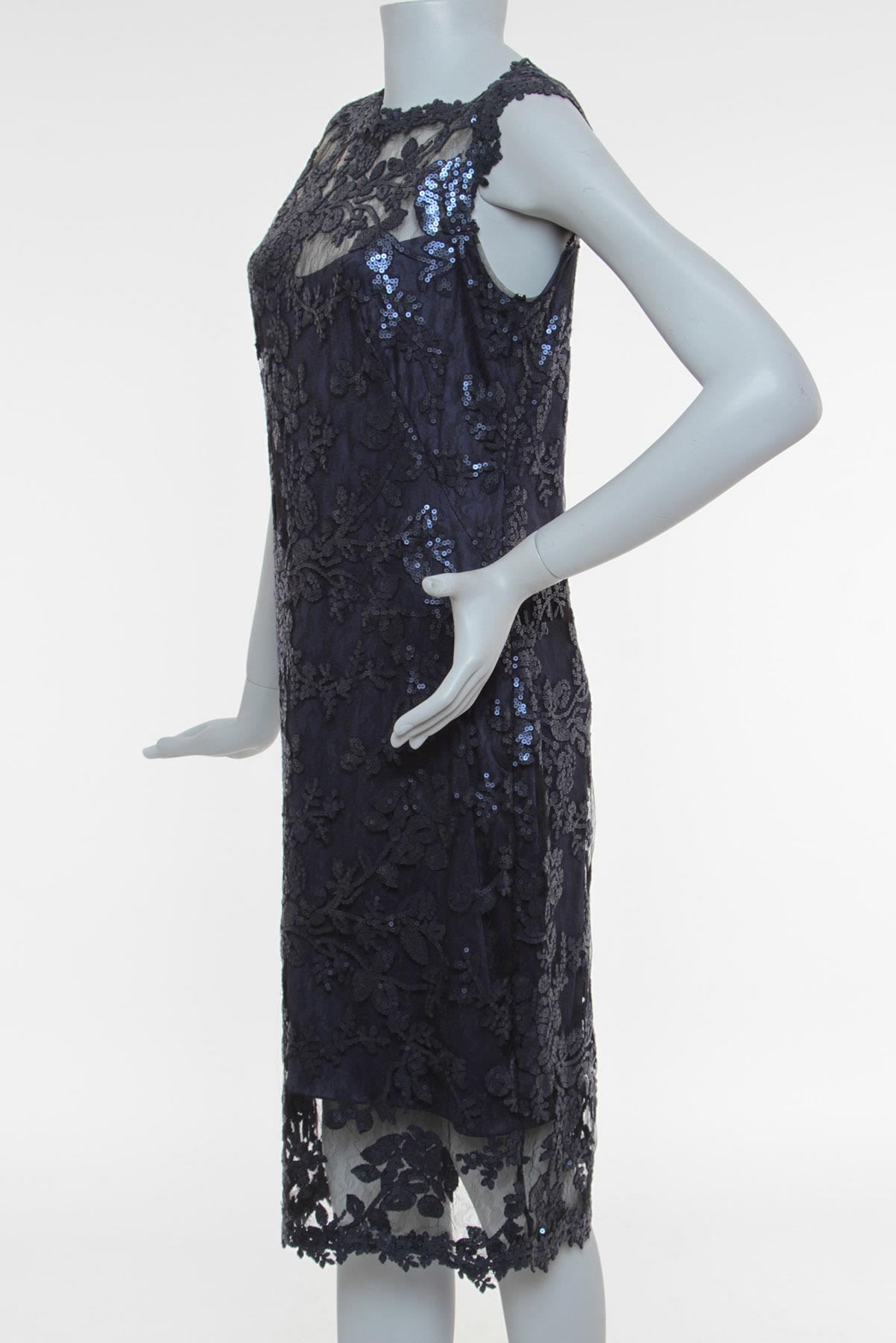 Vestido Manga Longa Tadashi Shoji Renda Bordado Azul
