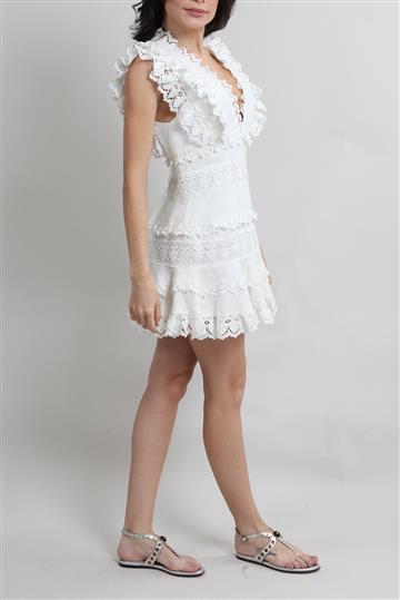 Vestido Zimmermann Mini de Linho e Renda Branco