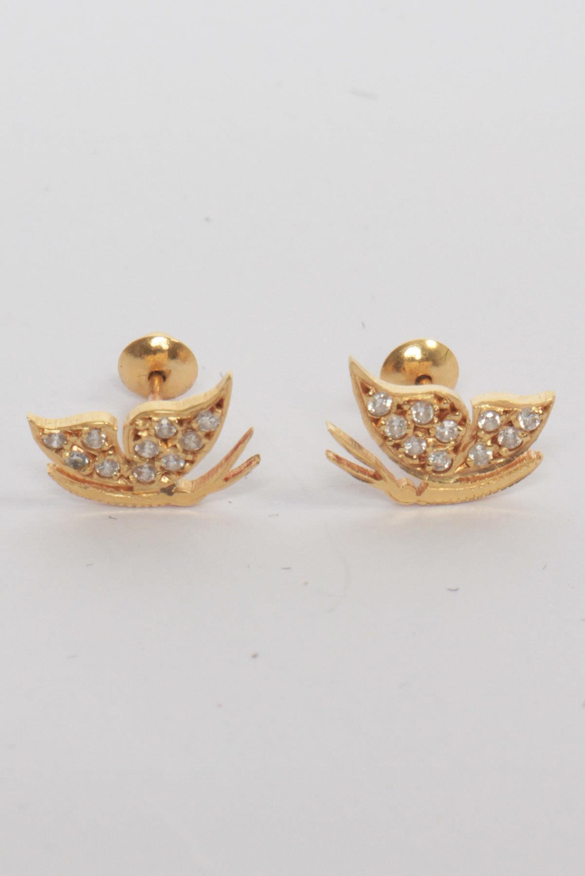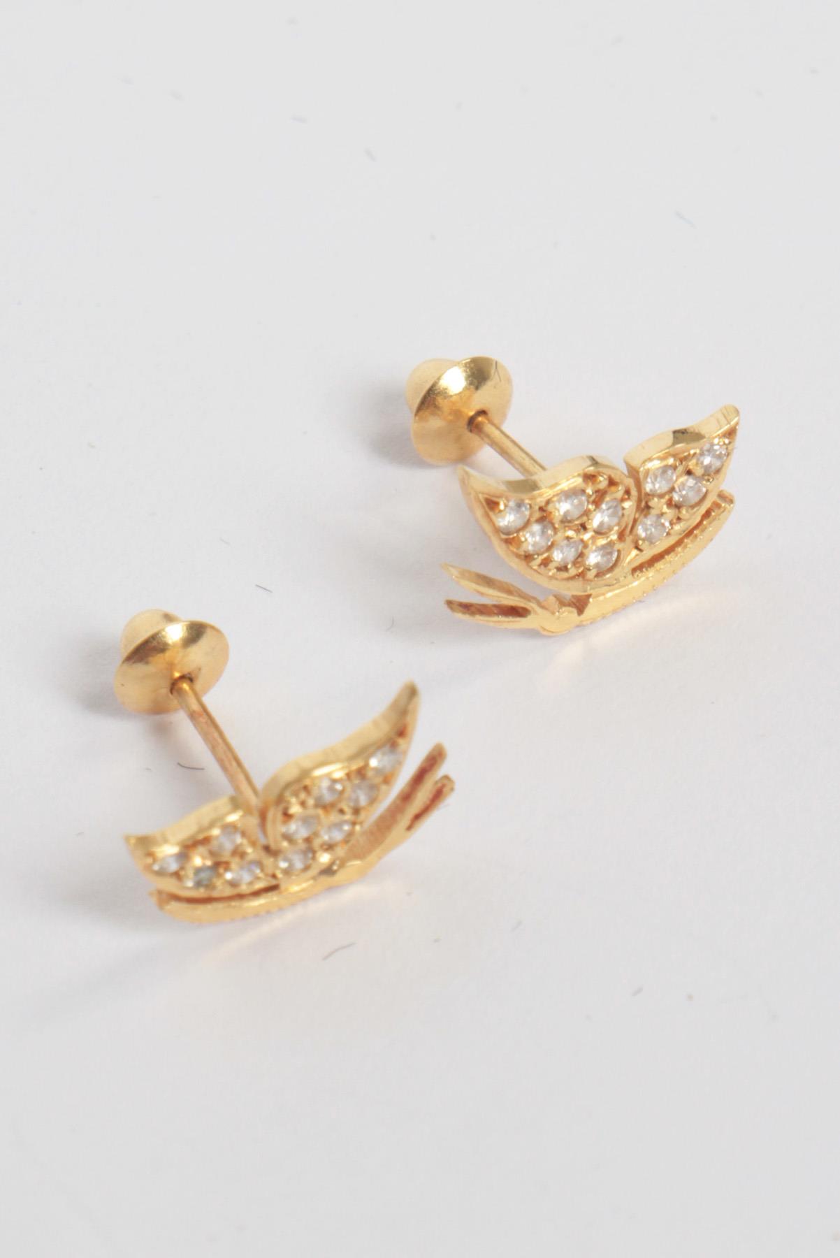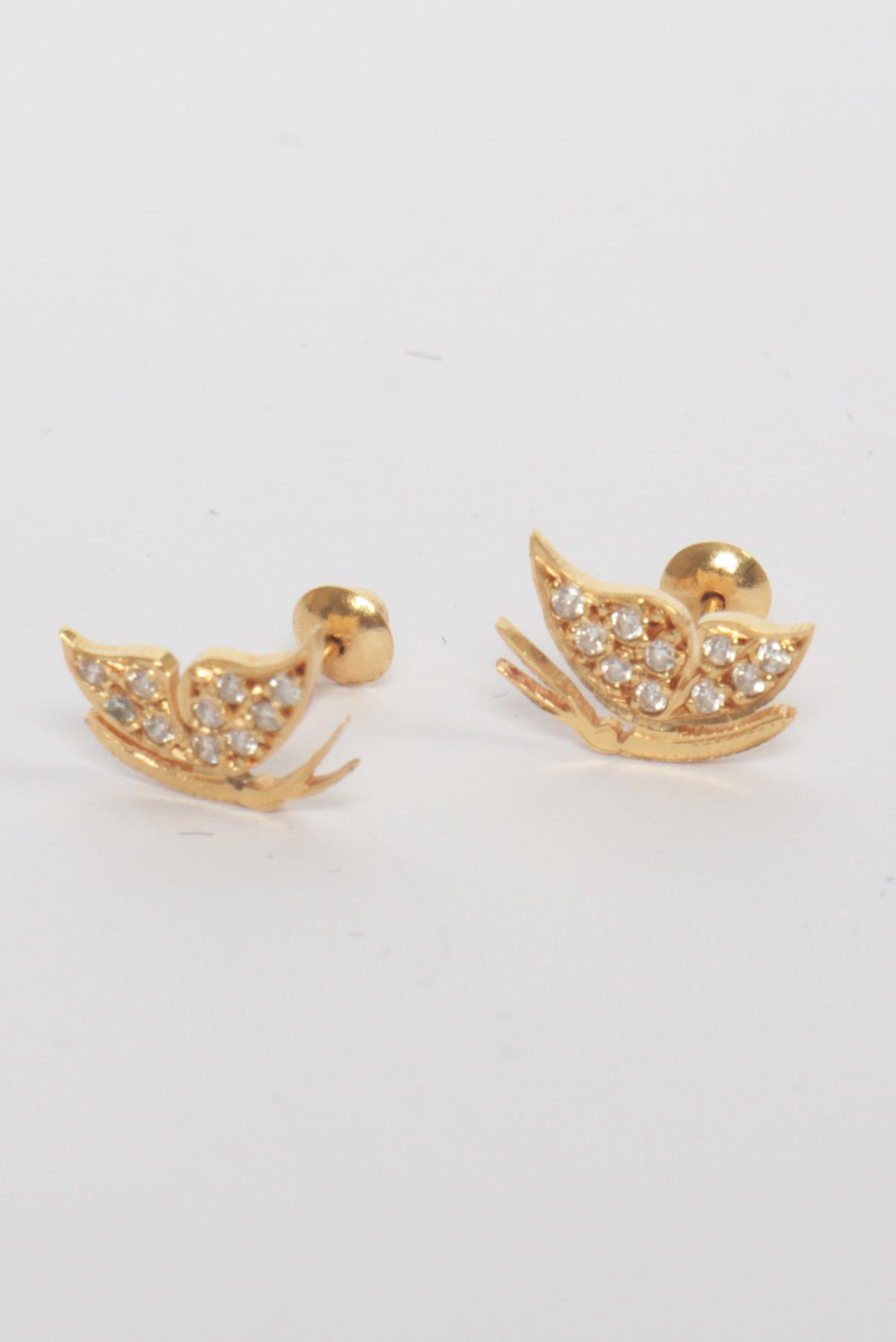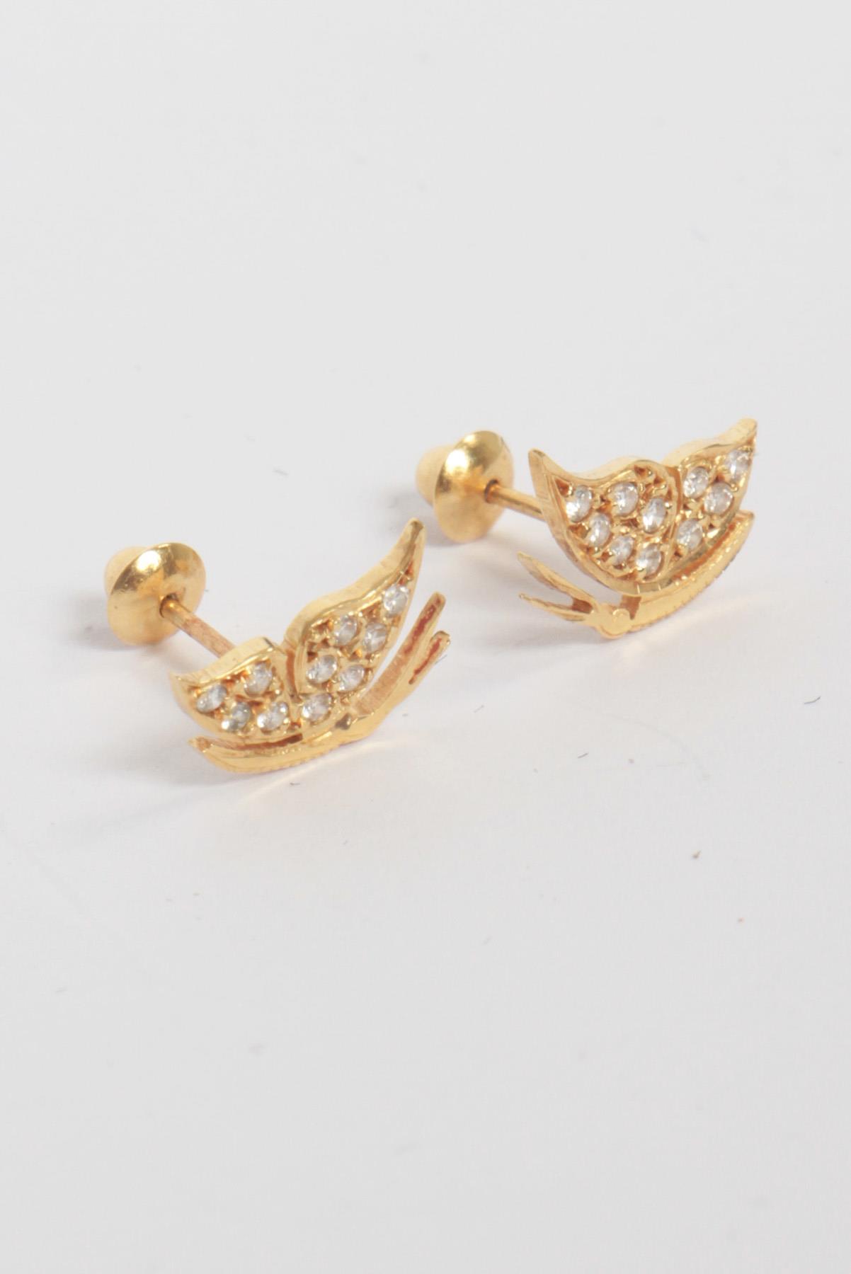 - Brincos em ouro 18K- Dourado e branco- Estrutura decorativa em formato de borboleta- Cravejados por pequenos brilhantes- Fechamento posterior por tarraxa de encaixe