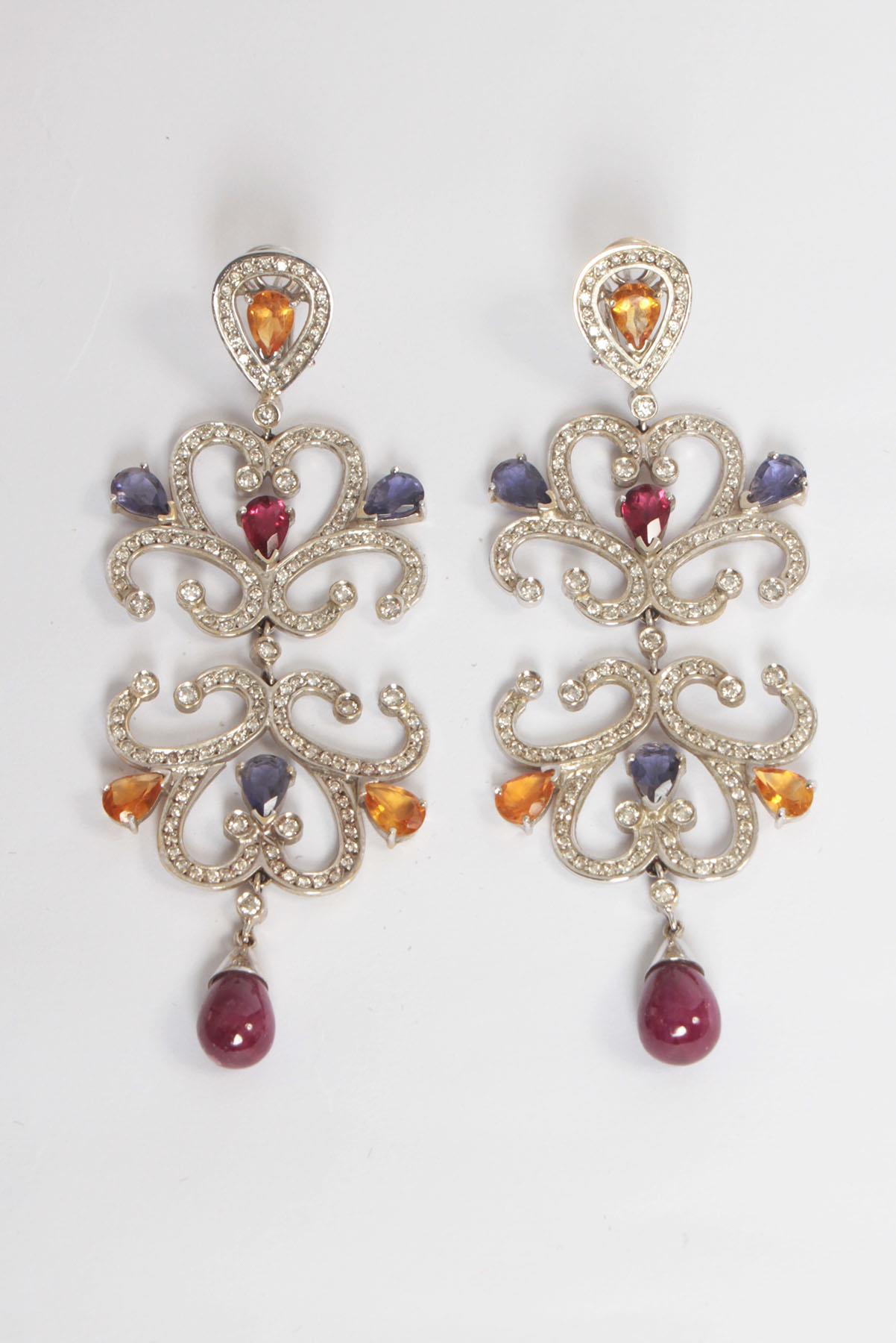 - Brincos em ouro branco com pedrarias