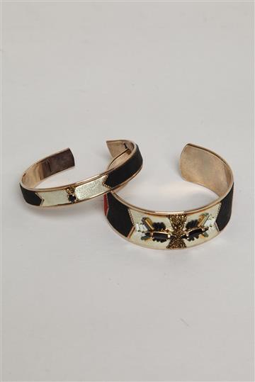 - Dupla de braceletes em metal e camurça