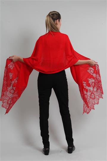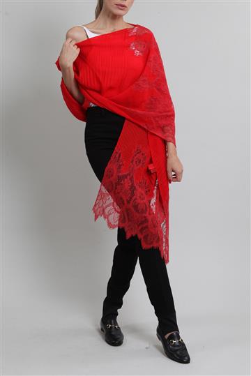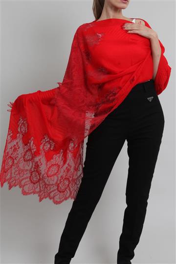 Lenço Valentino Echarpe Cashmere e Renda Vermelha