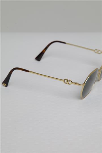 - Hastes finas laterais com pequena logomarca e ponteiras ornamentadas