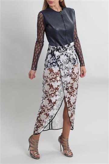 Body Paula Raia Couro e Renda Azul