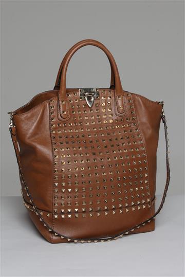 - Alça fixa e alongada para uso nos ombros composta por corrente metálica e tira de couro interna