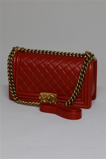 - Aba superior em camurça com fecho de encaixe interno e argola metálica ampla com corrente