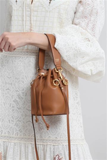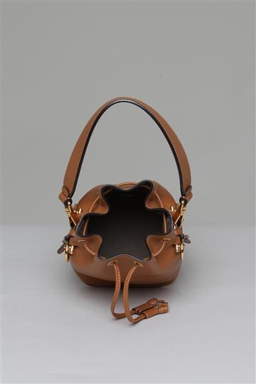 - Bolsa estilo bucket em couro texturizado e encorpado