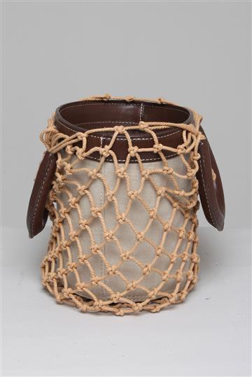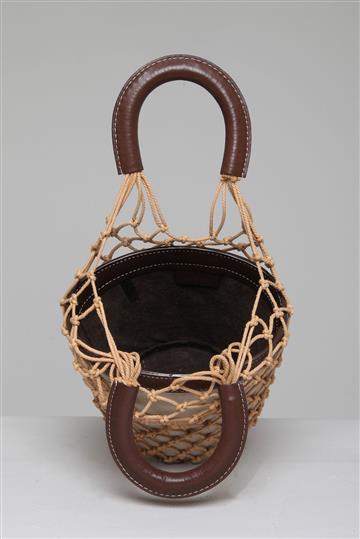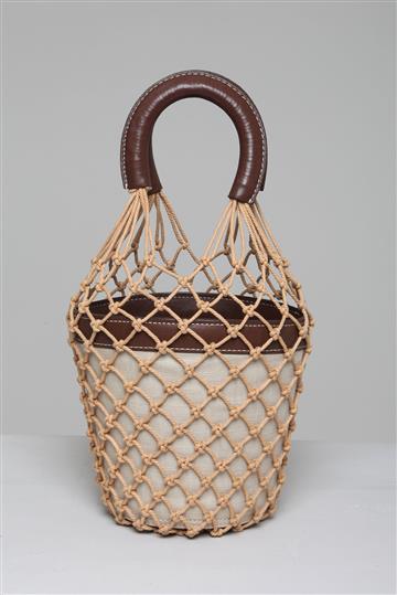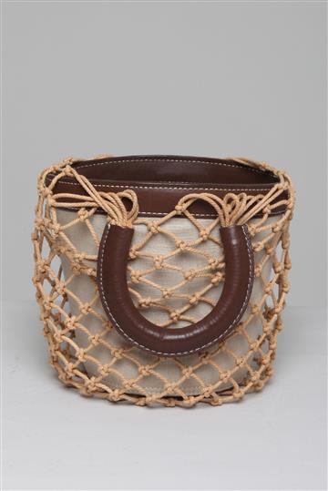 - Bolsa em lona de linho, couro e palha maleável