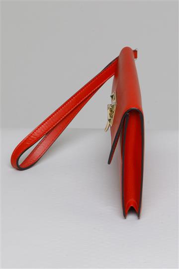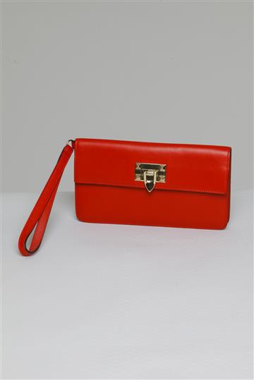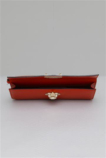 - Aba superior com fecho metálico central