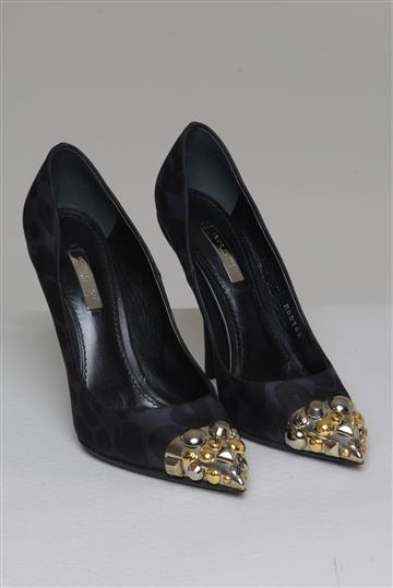 Sapato Louis Vuitton Scarpin Biqueira Esferas Metalizadas Preto