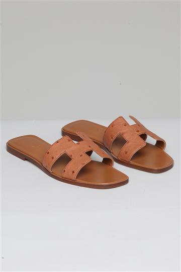 - Sandália estilo rasteirinha em couro de avestruz