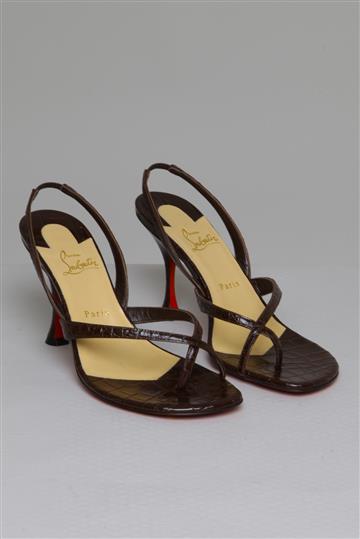 - Sandália em couro prensado e texturizado