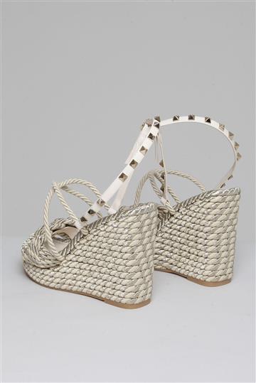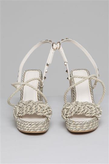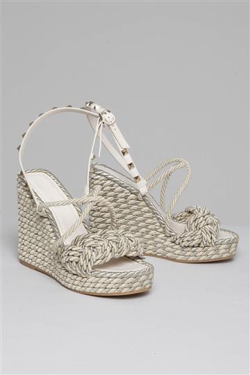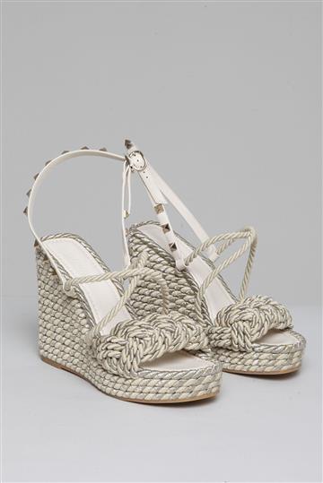 - Salto anabela inferior de altura elevada e inteiramente revestido por cordas metalizadas