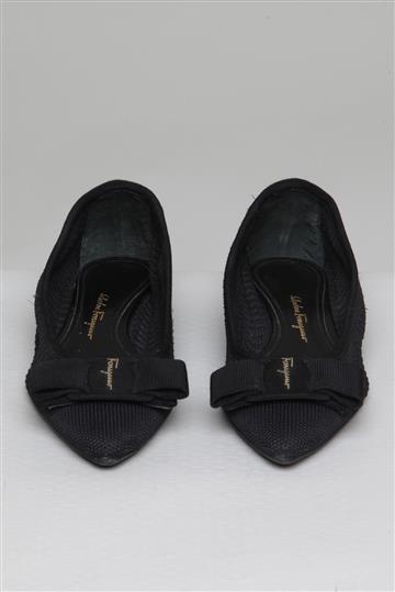- Laço superior decorativo com pequena plaqueta metálica de logomarca
