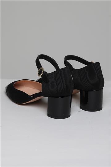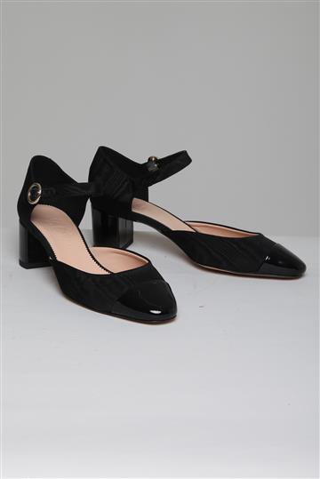 - Bico arredondado frontal com biqueira em couro envernizado