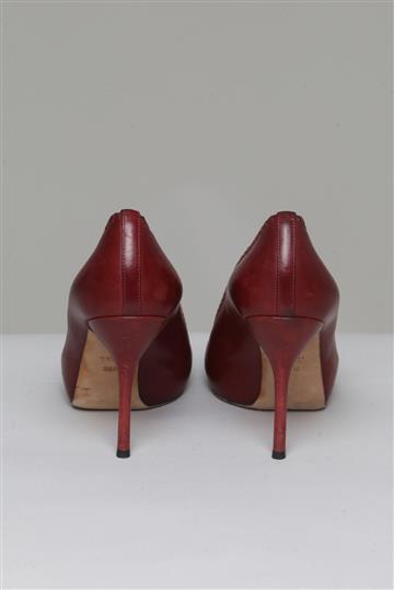 - Solado em couro liso com marcas de uso aparentes e leve desgaste frontal