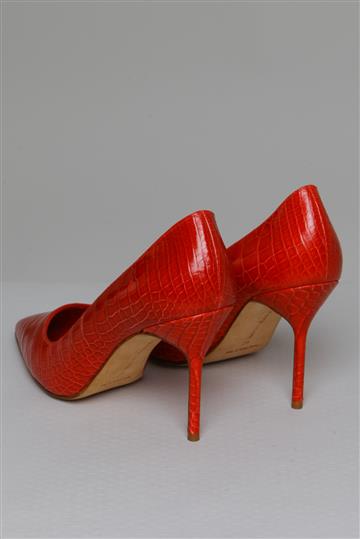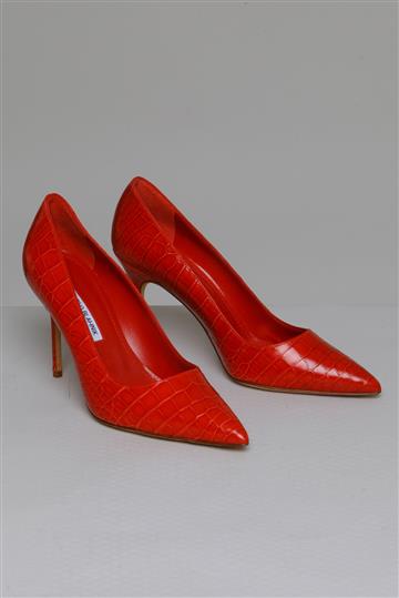 Sapato Manolo Blahnik Scarpin Couro Prensado Vermelho