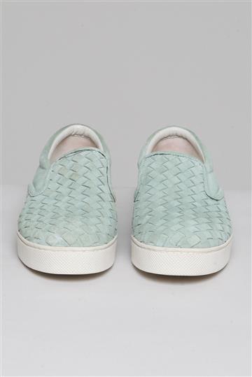 - Recortes laterais aparentes com elasticidade aplicada para melhor ajuste aos pés