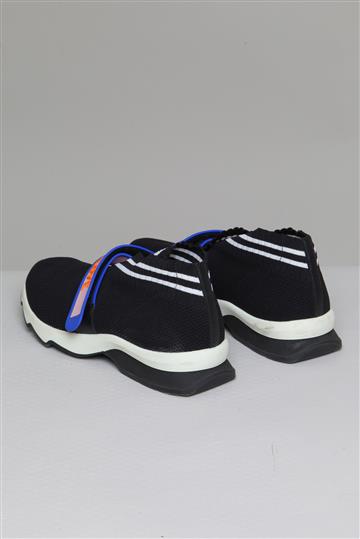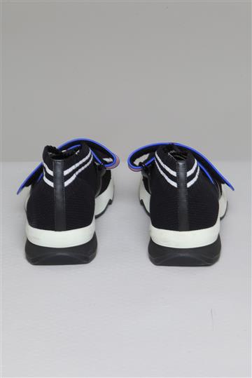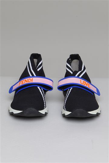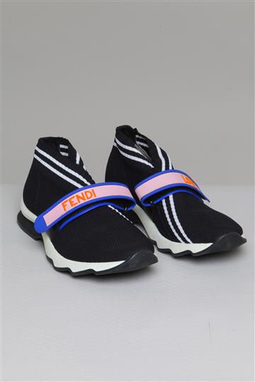 - Abertura transpassada superior com elásticos bicolores aplicados ao redor
