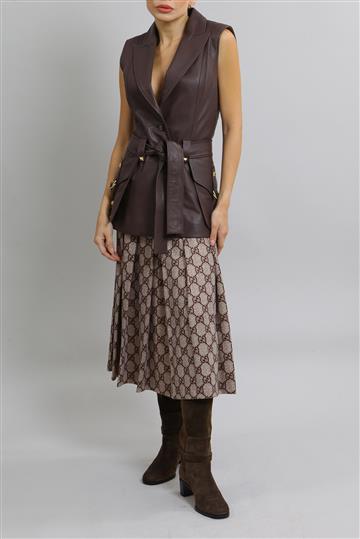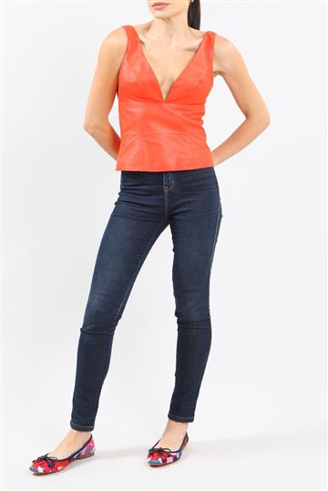 Blusa Patricia Viera Couro Decote 'V' Vermelho