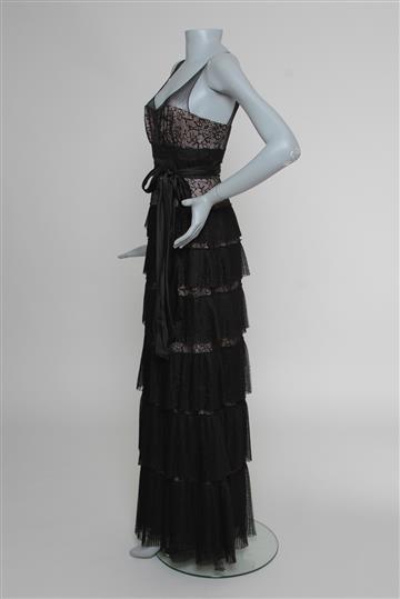 - Pala central em cetim com amarração posterior para ajuste ao corpo