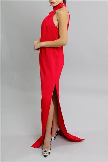 - Decote trapézio com gola alta drapeada ajustada ao pescoço