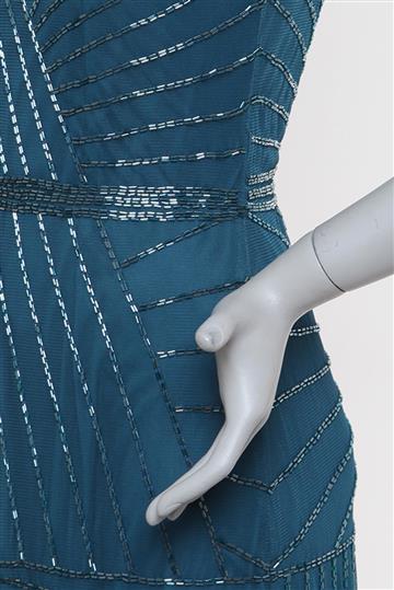 - Aplicação decorativa de canutilhos metalizados por toda a peça