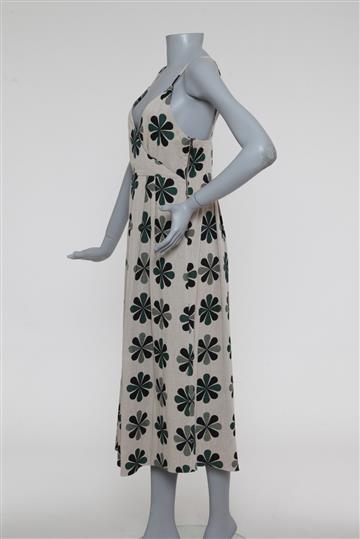 Vestido A. Niemeyer Alça Fina Linhão Estampado Bege