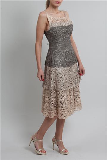 Vestido Achados da New Midi Tramado Bege Vakko Bicolor