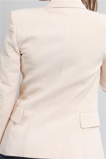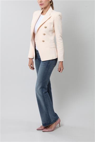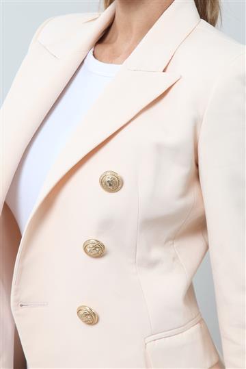 - Fechamento frontal por abotoamento duplo com botões decorados