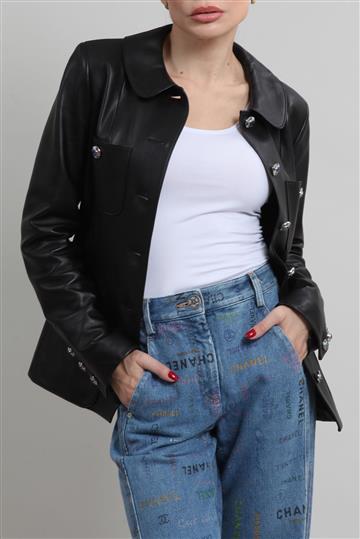 - Casaco em couro liso e macio