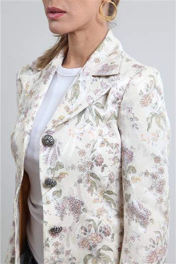 - Fechamento frontal por abotoamento com botões cravejados por strass