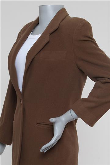 - Decote alongado em 'V' com lapelas clássicas