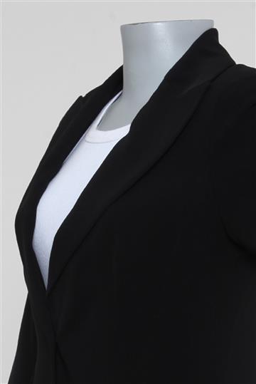 - Decote amplo e alongado em 'V' com lapelas clássicas