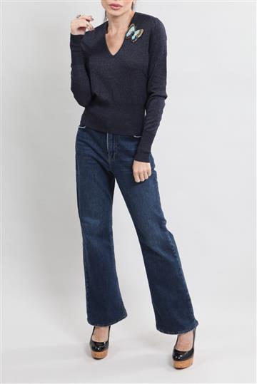 - Bordado acolchoado superior em formato de borboleta com paetês aplicados