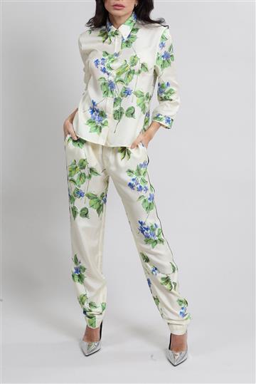 - Mangas 3/4 retas com punhos pregueados e estampados