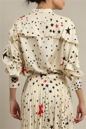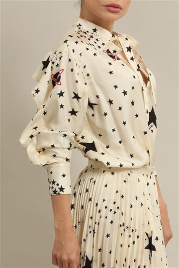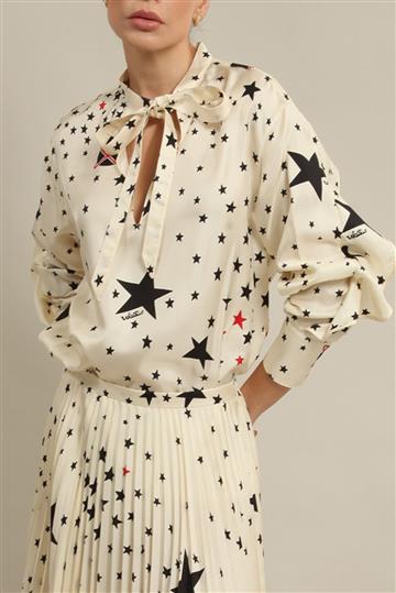 - Decote amplo em 'V' com tiras alongadas para amarração e fechamento
