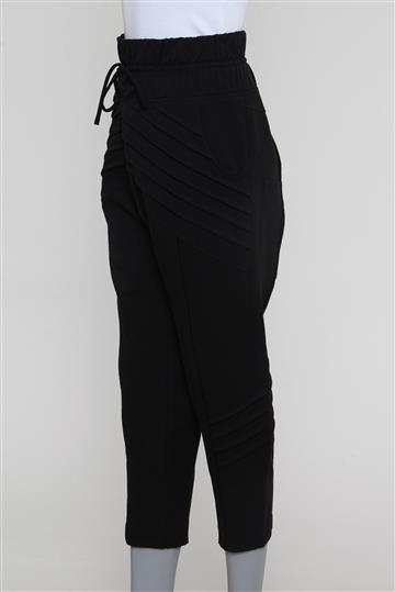 - Cintura alta com cós pespontado franzido e elasticidade interna para melhor ajuste ao corpo