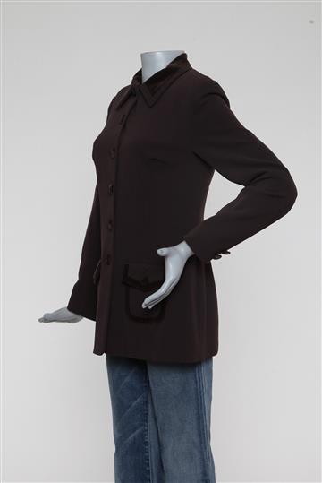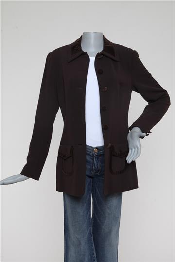 - Casaqueto em tecido encorpado à base de lã com detalhes em veludo