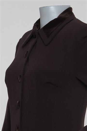 - Fechamento frontal por abotoamento com botões revestidos por veludo