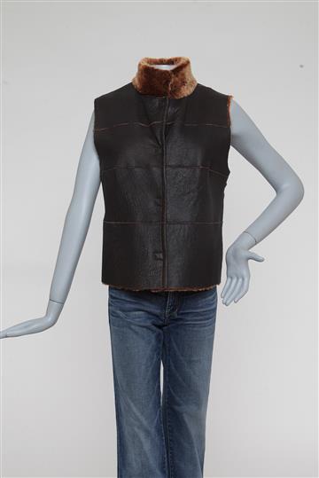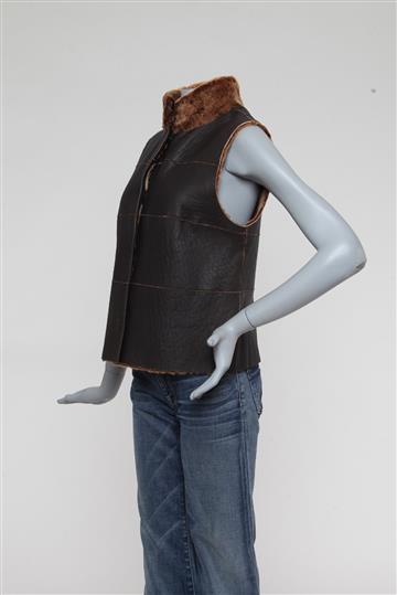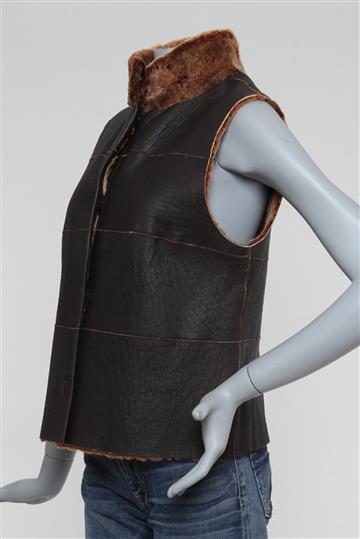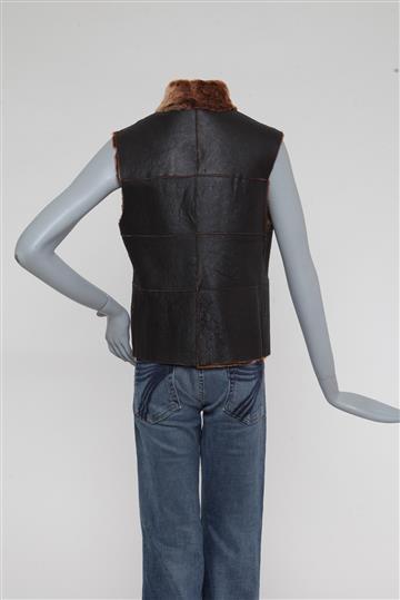 - Colete em couro rugoso e pele