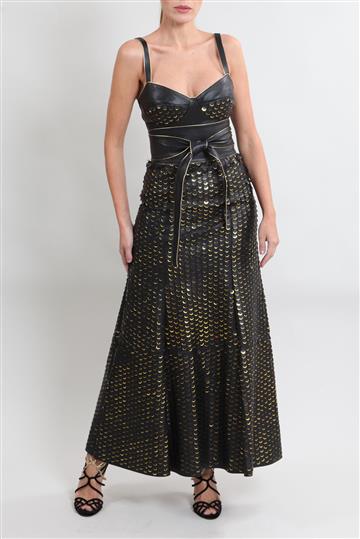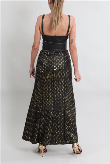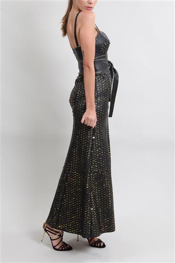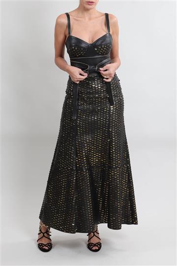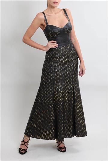 Conjunto Patricia Viera Body e Saia Longa em Couro com Esferas Preto