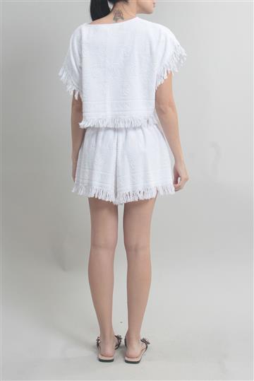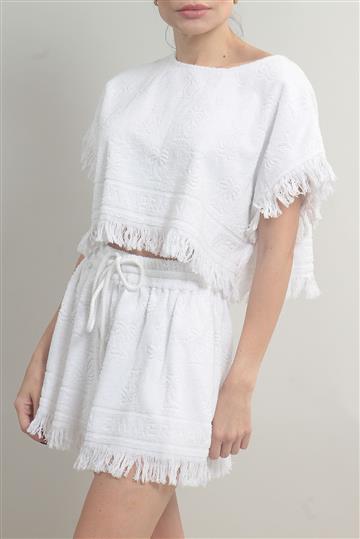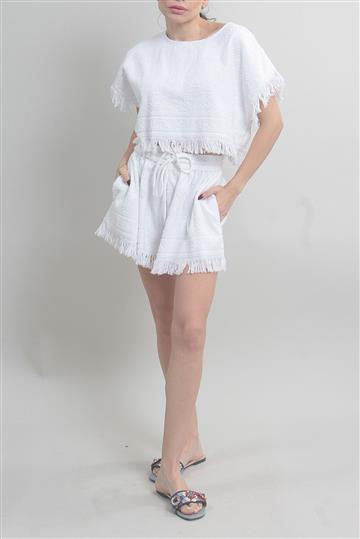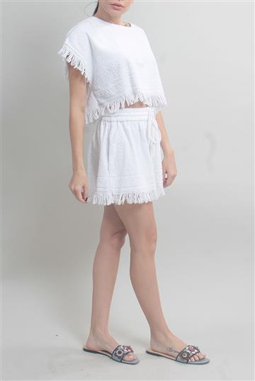 - Cós reto com cintura alta e elasticidade interna para melhor ajuste ao corpo