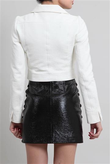 - Jaqueta em couro texturizado e encorpado de aspecto envernizado
